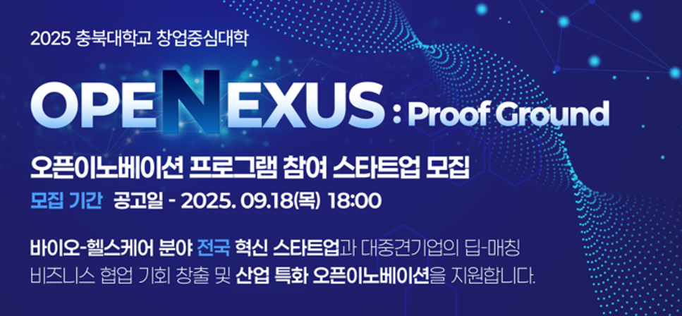 | (주)토르 테라퓨틱스, 『2025 충북대 창업중심대학 오픈넥서스 : Proof Ground』 최종 선정 | ||