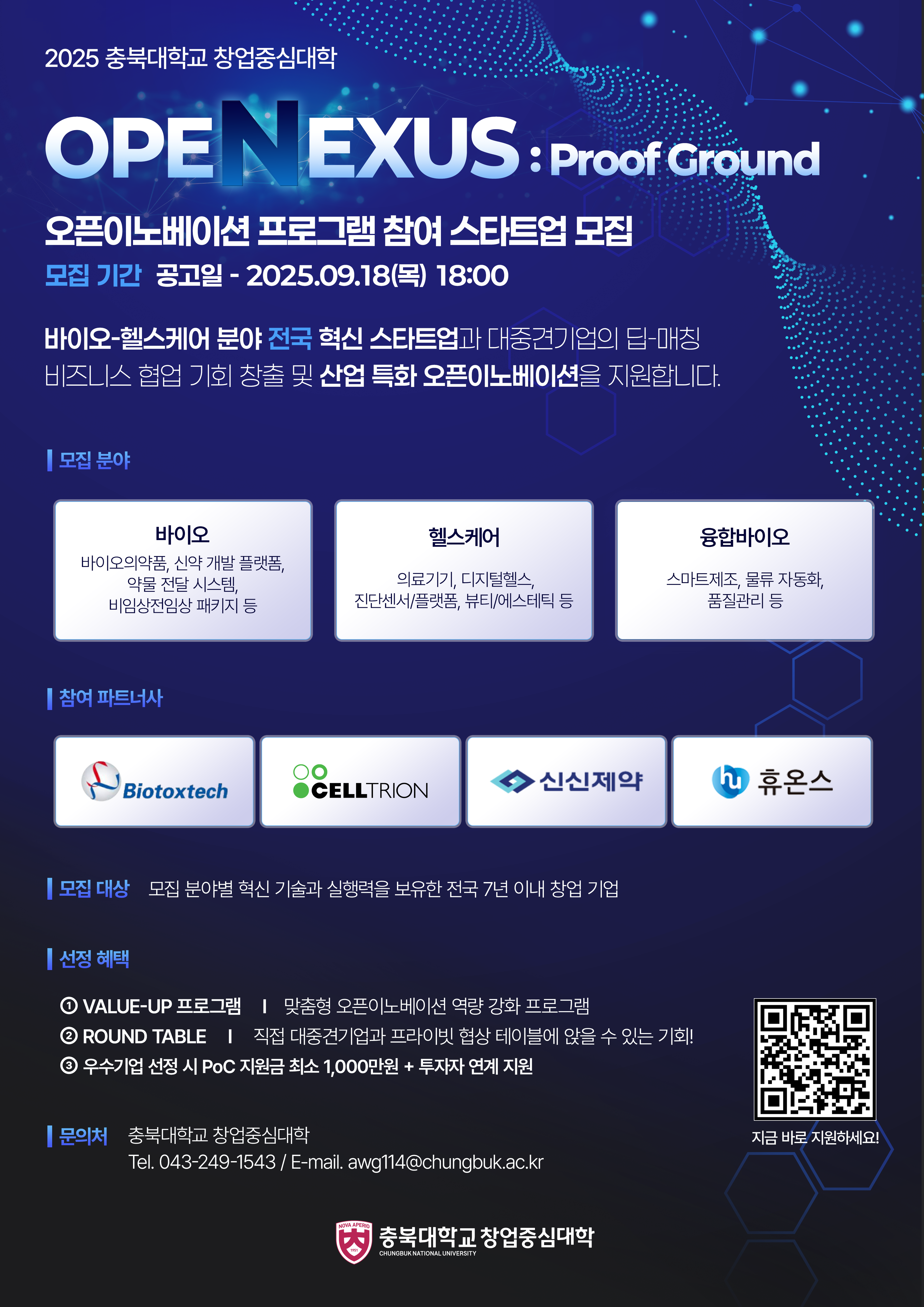 | (주)토르 테라퓨틱스, 2025 충북대학교 창업중심대학 오픈넥서스 ‘우수기업’ 선정 | ||